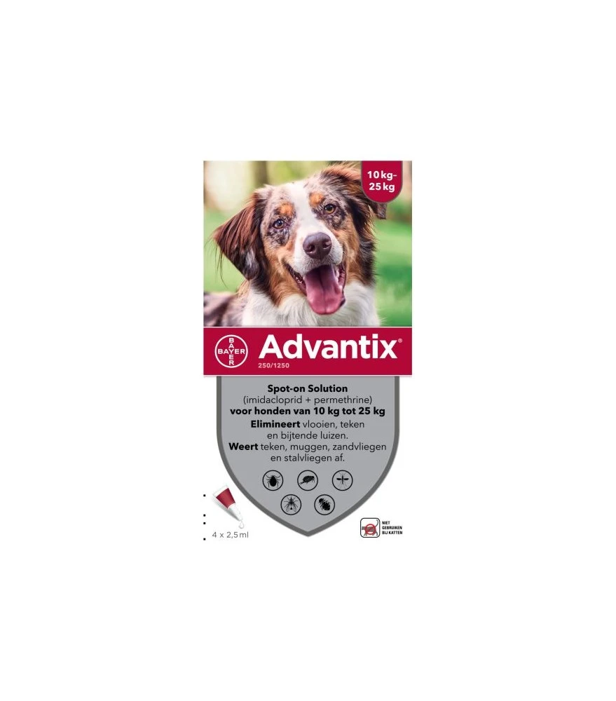 Advantix 250 voor honden van 10-25 kg, 4 pipetten.
