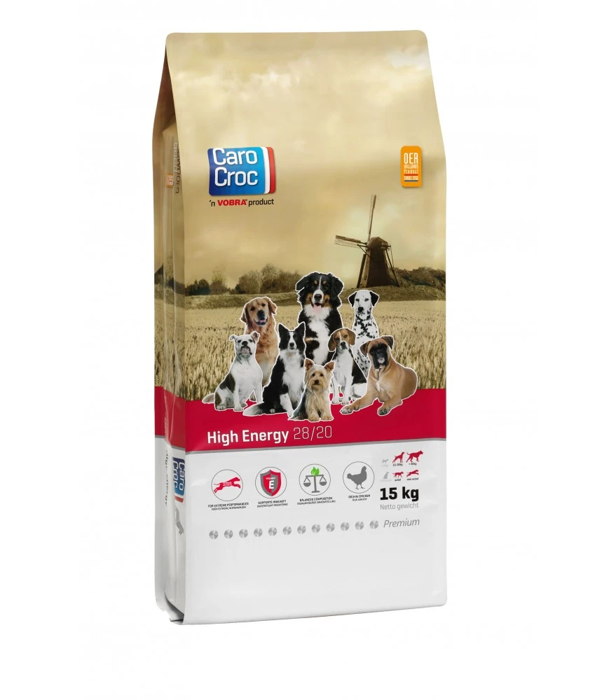 Levert jouw hond grote inspanningen (meer dan 3 uur per dag)? Denk hierbij aan honden tijdens het jachtseizoen of honden die aan endurance training doen. Voorkom tekorten en voer je hond tijdens deze periode CaroCroc High Energy.