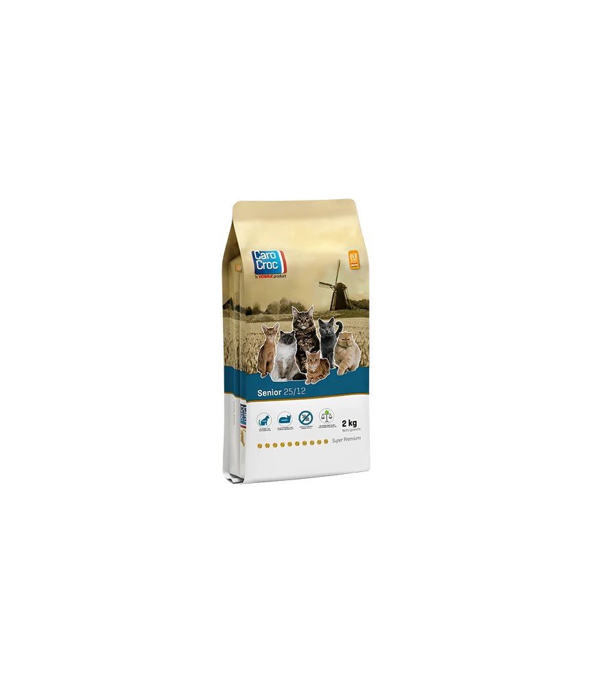 Naarmate jouw kat ouder wordt, verandert de voedingsbehoefte. Het is erg belangrijk om met het voer in te spelen op deze veranderende behoefte om een ideale lichaamsconditie te behouden. Dit draagt bij aan de verlenging van een gezond kattenleven. CaroCroc Senior speelt in op deze veranderende behoefte voor katten vanaf 8 jaar. Het verlaagde eiwit-, vet- en mineralen gehalte vermindert de belasting van de lever, nieren en het spijsverteringsstelsel.