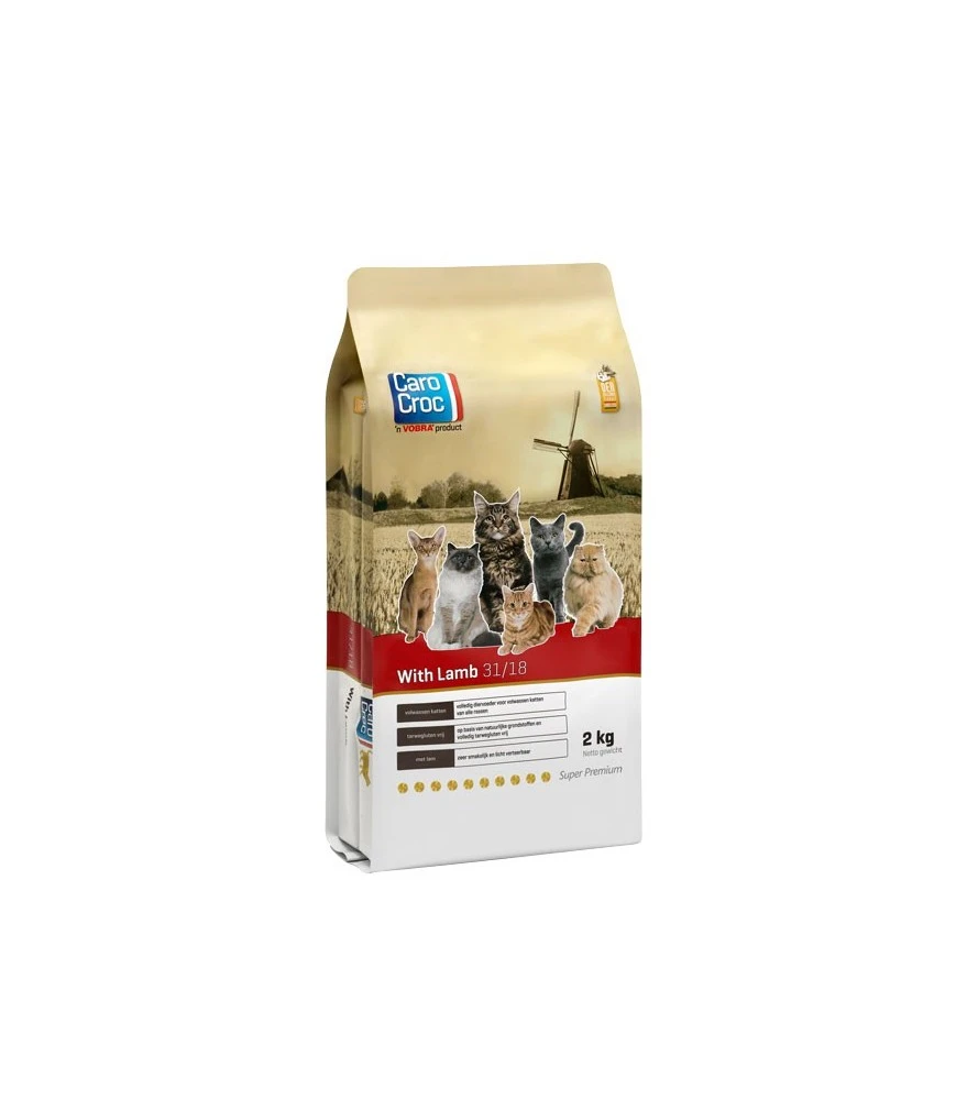 Heeft je kat een gevoelige spijsvertering? Kies dan voor CaroCroc With Lamb brokjes. CaroCroc With Lamb is een smakelijk, licht verteerbaar voer voor volwassen katten jonger dan 8 jaar. Deze brokken zijn bereid met verse lam en bevatten geen tarwegluten. Ook bevatten de brokken prebiotica voor gezonde darmen.