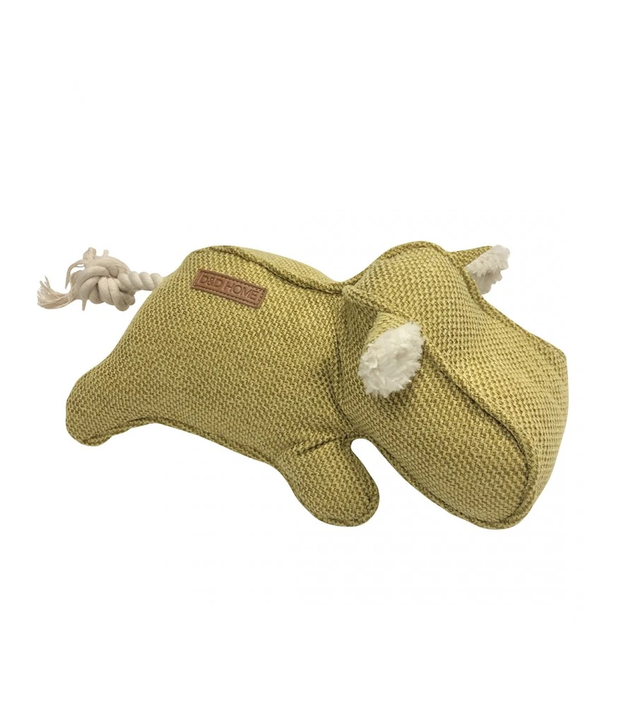 Hondenspeeltje Emmy van D&D HOME is voor iedere hond een must have. Dit duurzame speeltje in de vorm van een nijlpaard, is uitgevoerd in een leuke chenille stof en opgevuld met polyester. Emmy heeft een staart in natuurlijke katoentouw en in de neus zitten 2 squeakers verwerkt voor extra speelplezier. En dankzij het mooie design en eigentijdse kleur past het speeltje perfect in elk interieur. Ook beschikbaar in andere stoffen en modellen.