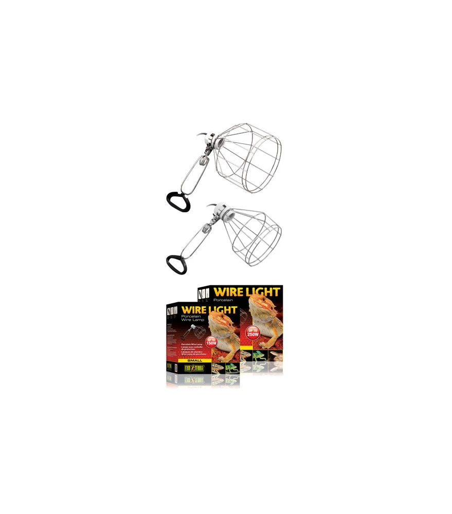 De Exo Terra Wire Light heeft een hittebestendige porseleinen fitting tot 150 Watt (PT2060) / 250 Watt (PT206) en is ideaal voor de Exo Terra Ceramic Heater (keramische warmtestraler), Exo Terra Solar Glo (kwikdamplamp met ingebouwde ballast) of gloeilampen met hoog wattage. De draadlamp beschermt tegen onnodige hitteopbouw en is veiliger in gebruik. De Exo Terra Wire Light is de enige lamp die aan alle veiligheidsvoorschriften voldoet, in gebruik met de Exo Terra Ceramic Heater. Combineer de Wire Light met de Exo Terra Light Bracket om de lamp veilig boven eender welk glazen terrarium te bevestigen.