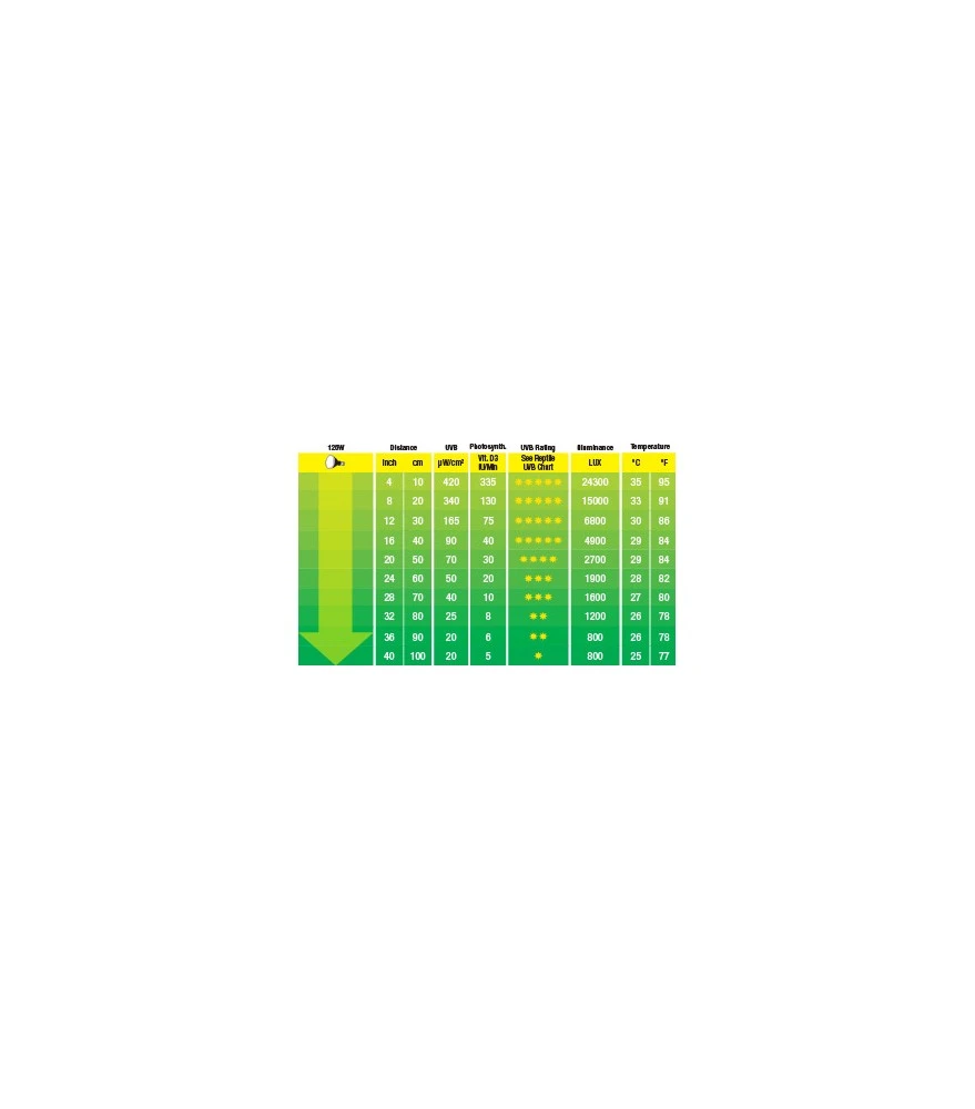 De Exo Terra Solar Glo is een kwikdamplamp met ingebouwde ballast voor reptielen, die de voordelen biedt van natuurlijk zonlicht, hetgeen één van de voornaamste aspecten is om reptielen gezond te houden. De Exo Terra Solar Glo wordt gekozen door professionele kwekers omdat het de geschikte balans biedt tussen ultraviolet licht (zowel UVA als UVB), visueel licht en infrarood licht (warmte), in één gemakkelijk aan te brengen lamp. De Exo Terra Solar Glo geeft een volledig lichtspectrum, met zorgvuldig afgestelde hoogten om de eetlust, de activiteit, de briljante kleuren, en een optimale kalkopname door vitamine D3 productie te verzekeren.