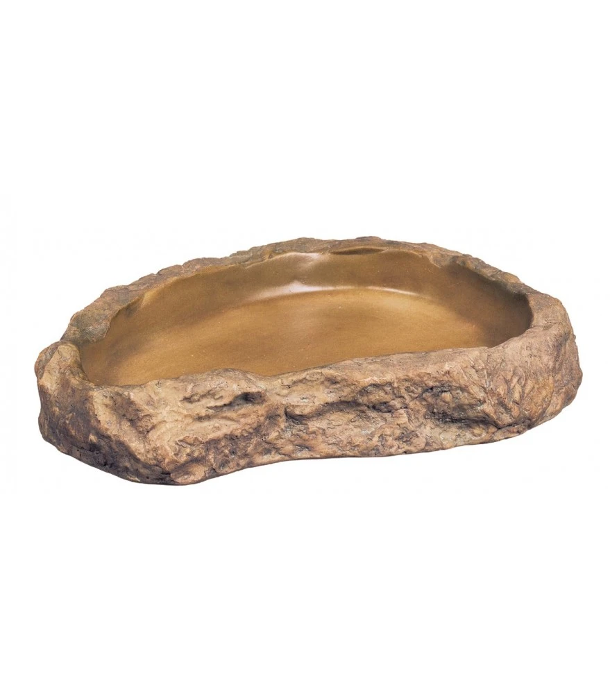 Exo Terra voederschalen hebben aan de buitenzijde een natuurlijke en realistische rotsafwerking en een gladde, niet-korrelige binnenzijde. De schalen zijn behandeld om de ontwikkeling van schadelijke bacteriën te verhinderen en het reinigen gemakkelijker te maken. De neutrale, natuurlijke kleur maakt het integreren in een woestijn-, tropisch of eender welk terrarium eenvoudig.