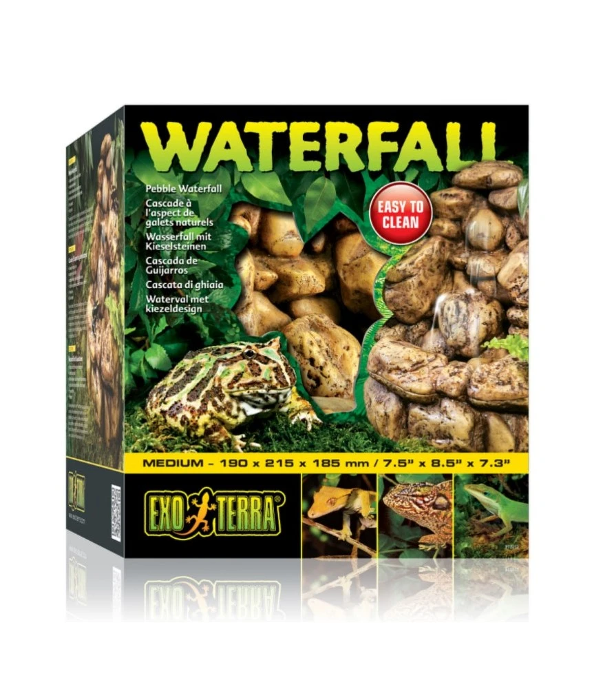 Het kiezeldesign van de Exo Terra Waterfall brengt de natuurlijke look van een kabbelend beekje in uw huiskamer. Deze kabbelende beekjes en watervalletjes worden vaak gebruikt door reptielen en amfibiën om te hydrateren en vormen een belangrijk aspect in elke tropische omgeving. Het stromende water stimuleert het natuurlijke drinkgedrag van hagedissen