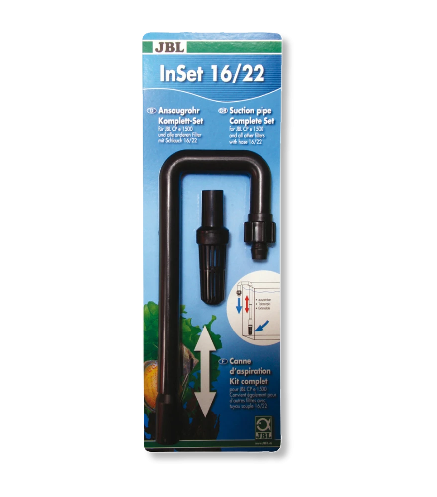 - Inhoud: aanvoerbuis in complete set incl. aanzuigmand voor buitenfilter. Beschikbaar voor 12/16, 16/22 en 19/25-27 slangen