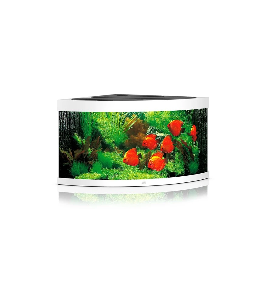 Het TRIGON 350 LED-aquarium schittert in elke hoek met zijn unieke diepte van 87 cm en zijn gebogen voorruit en wordt optimaal verlicht door vier tl-buizen.