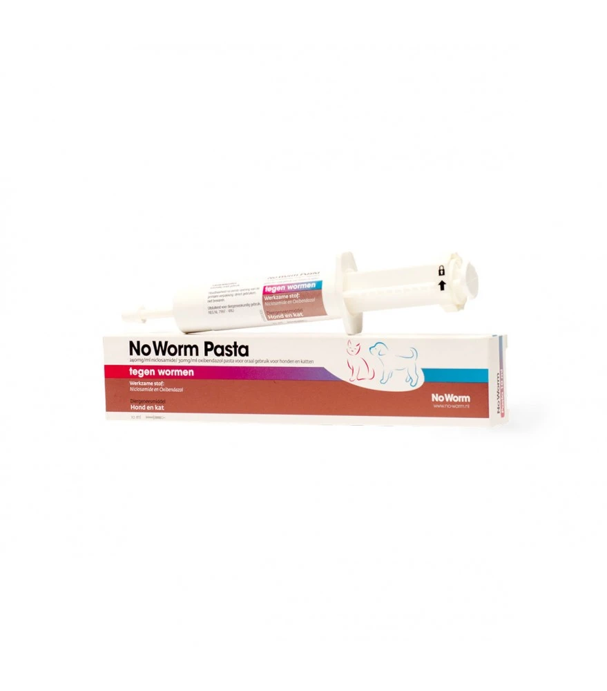 No Worm Pasta 10 ml. Deze pasta behandelt jouw hond of kat tegen allerlei soorten wormen: spoel-, lint-, haak- en zweepwormen. De pasta is geschikt voor alle rassen en voor alle leeftijden. Dus ook voor puppy’s en kittens. De pasta kun je makkelijk toedienen: met een doseerspuit kun je de pasta achter op de tong spuiten. Ook kun je de pasta door het voer mengen. Je hoeft de pasta dankzij de effectieve werking slechts éénmaal toe te dienen.